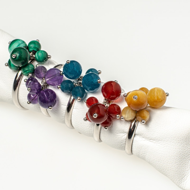 Ogni anello è differente in base alle pietre utilizzate, rendendo unico ogni gioiello.