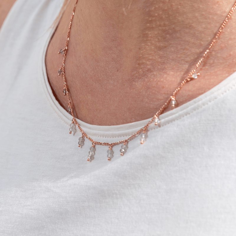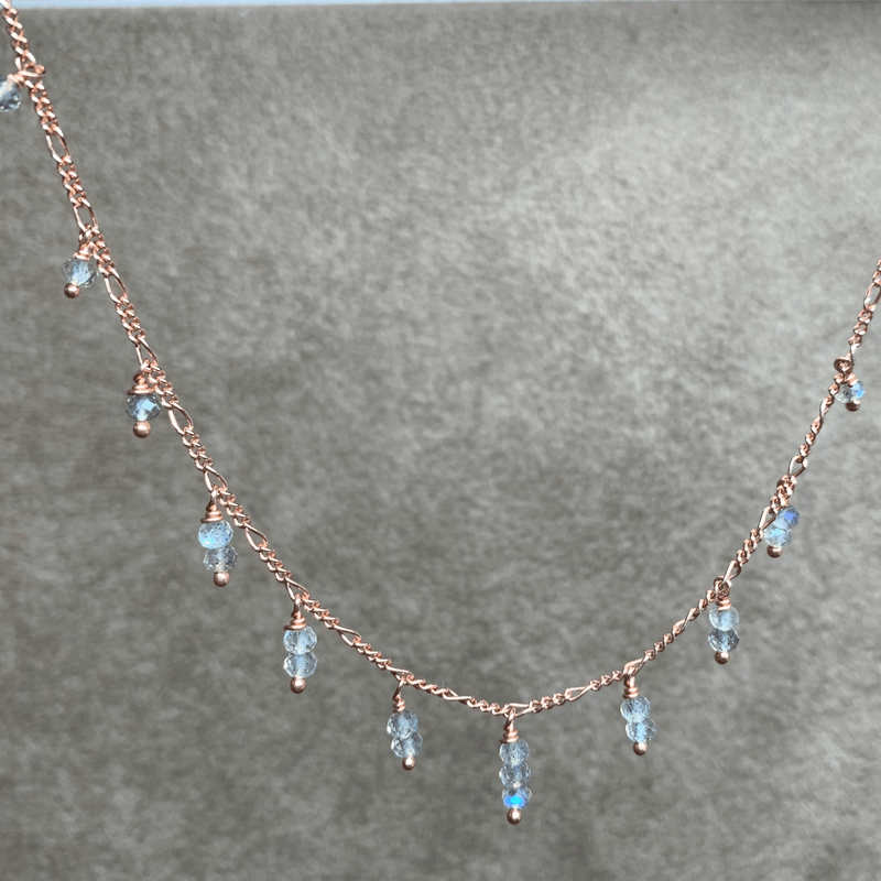 La caratteristica iridescente della Labradorite rende unico ogni gioiello creando sfumature di azzurro sempre differenti.
